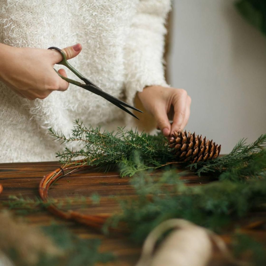 Tee jouluinen havukranssi kotiinviemisiksi