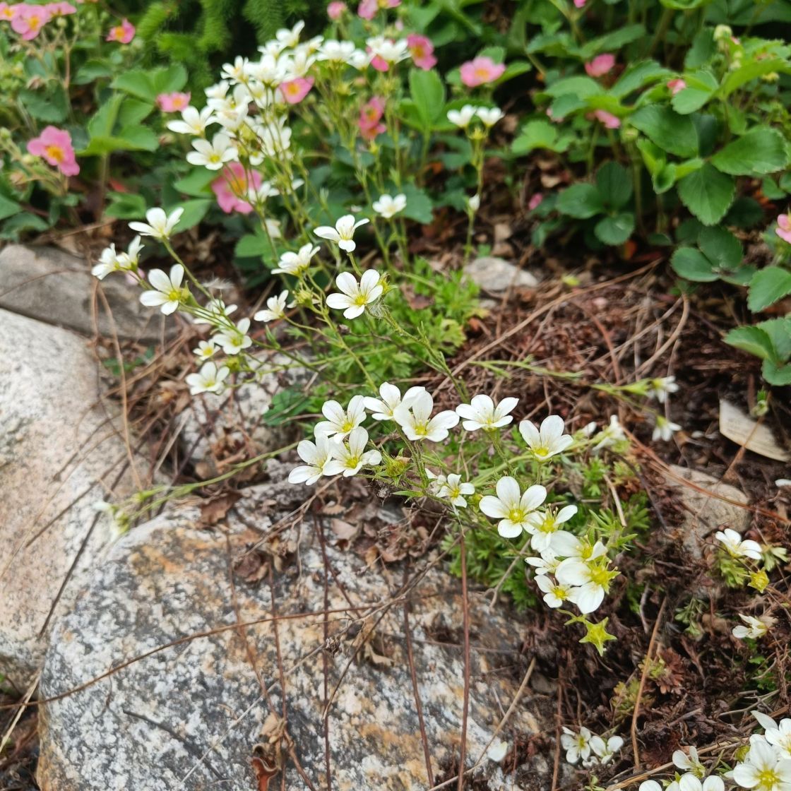 Keväällä valkoisena kukkiva maanpeiteperenna aurinkoiseen paikkaan.
