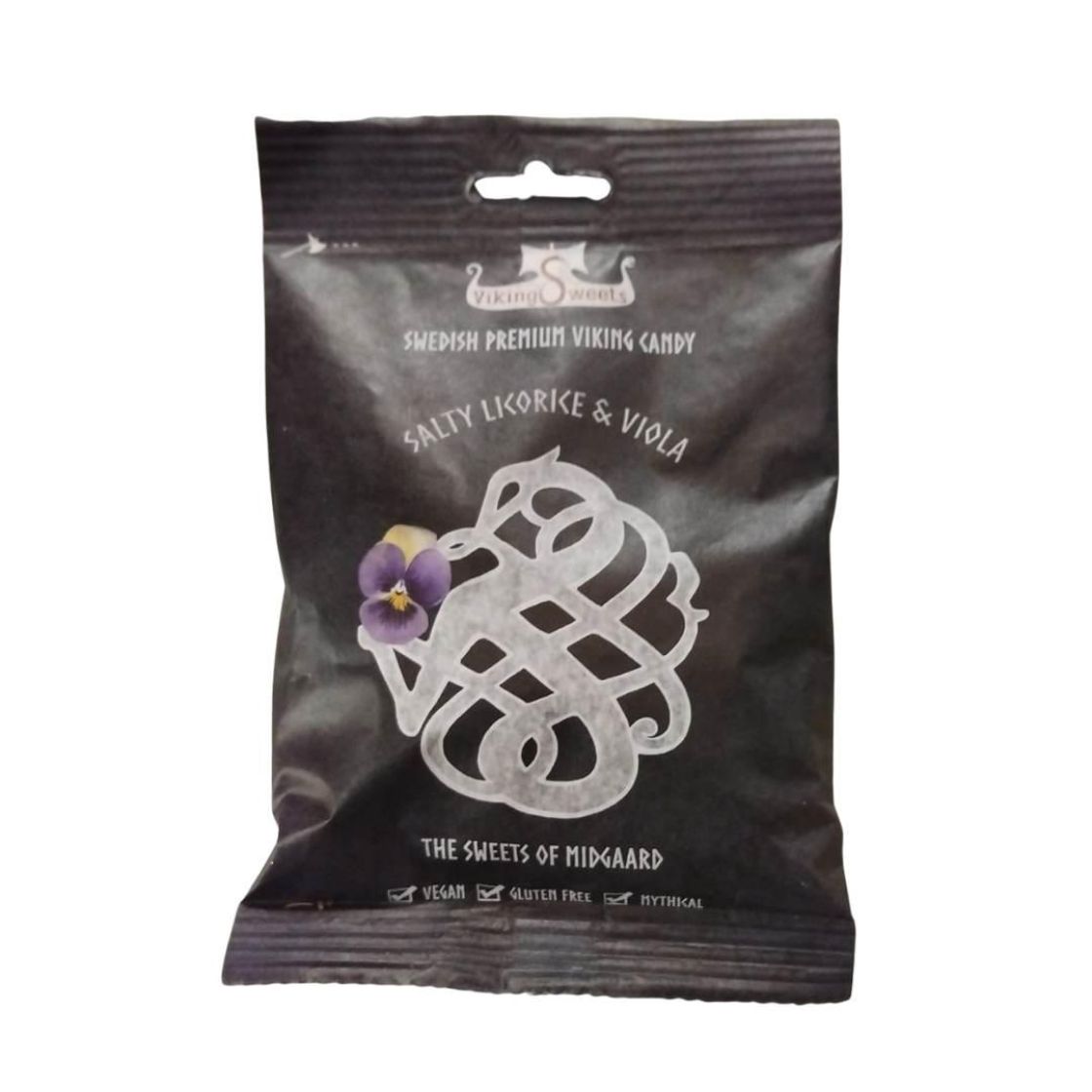 Vegaaninen ja gluteeniton lakritsi suloisen orvokin vivahteella.